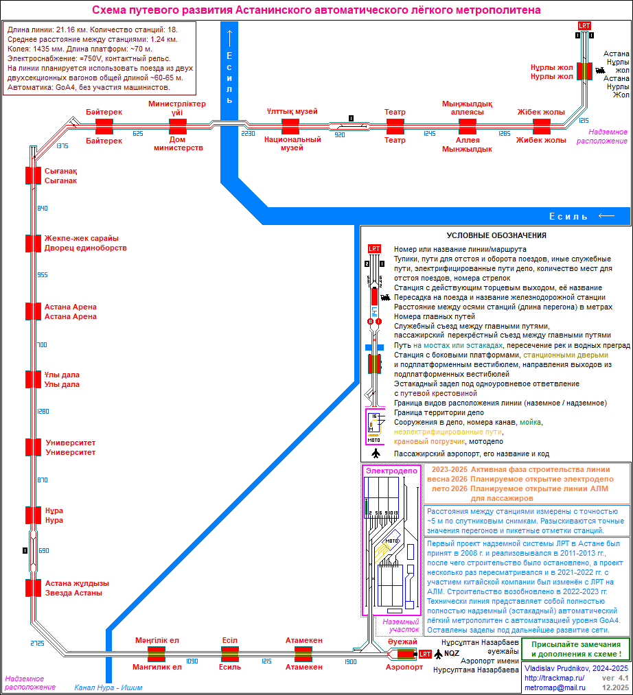 Схема путевого развития Астанинского автоматического лёгкого метрополитена